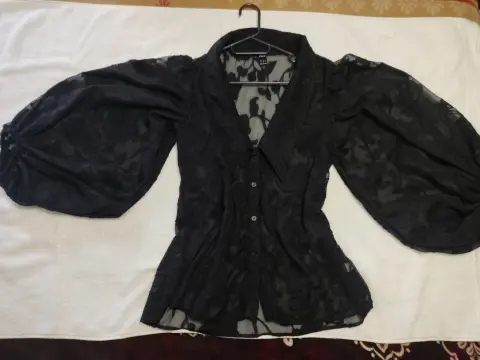 Blusa negra. Blusa negra encaje transparente mangas campana talla m con botones de lujo