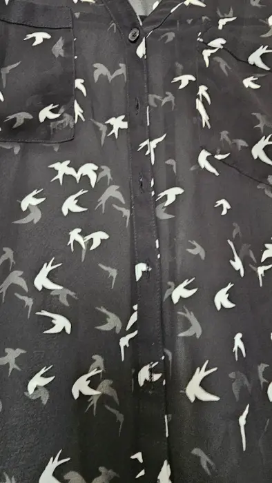 Hermosa blusa semitransparente color negra con plomutas blancas, super bonita
