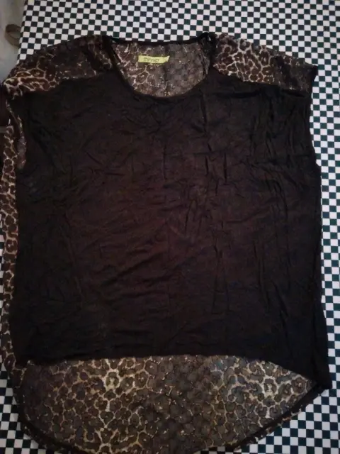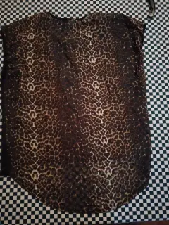 Blusa negra con leopardo. Excelente blusa color negro y espalda de leopardo de cola de pato brazos descubierto