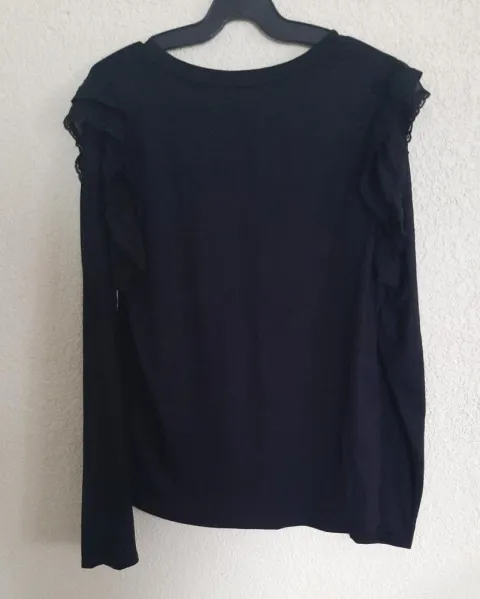 Blusa negra con olanes Lefties. Bonita blusa negra con olanes de encaje. Nueva con etiqueta, nunca se usó.
