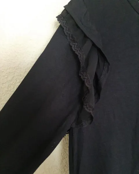 Bonita blusa negra con olanes de encaje. Nueva con etiqueta, nunca se usó.