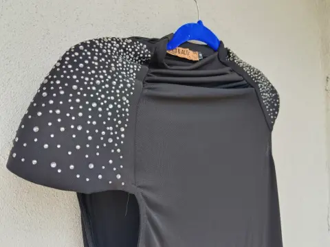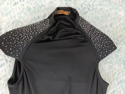 Blusa negra hermosa, es nueva sin ninguna puesta, tiene pedrería en los hombros color plateada es talla L, aunque queda ceñida por lo tanto queda a una talla M