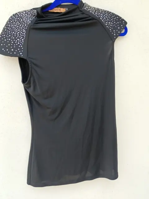 Blusa negra con pedrería. Blusa negra hermosa, es nueva sin ninguna puesta, tiene pedrería en los hombros color plateada es talla L, aunque queda ceñida por lo tanto queda a una talla M