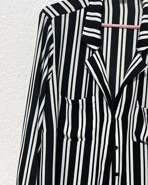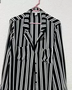 Hermosa Blusa negra con rayas blancas en escote V, muy ligera y casualEstoy segura que Tu le puedes dar una segunda oportunidad.