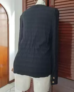 Blusa negra corrugada de botones