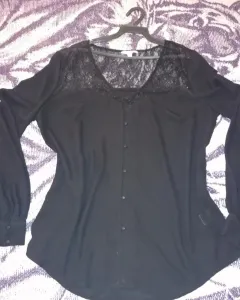 Blusa negra de gasa y encaje. Bonita blusa talla L o la puedes utilizar overzised es muy cómoda y elegante sin detalles.