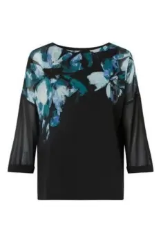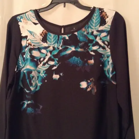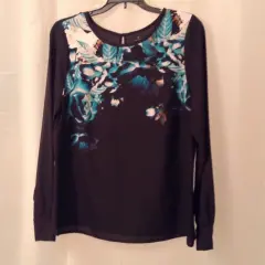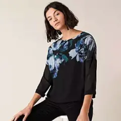 Blusa negra estampado flores. De la parte de atrás es Lisa en negro, y señor delante flores talla xl