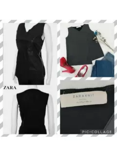 Blusa negra estilo piel. Luce bellisima!! En perfectas condiciones, sin detalles. Usada una vez. La parte de atrás es tipo suéter delgado y tiene strech; la parte de enfrente tipo piel y es asimétrica. Talla MX 26.De axila a axila: 45 cm.Largo: 59 cm