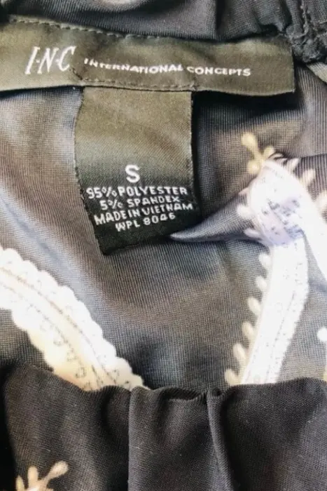 Blusa negra Halter talla S Marca I.N.C. Blusa negra con patrones en blancoTela pesada/ americana marca I.N.CTalla chicaA la altura del halter tiene una tira que puedes hacer moño o adorno que gustesUna puesta/sin detalles