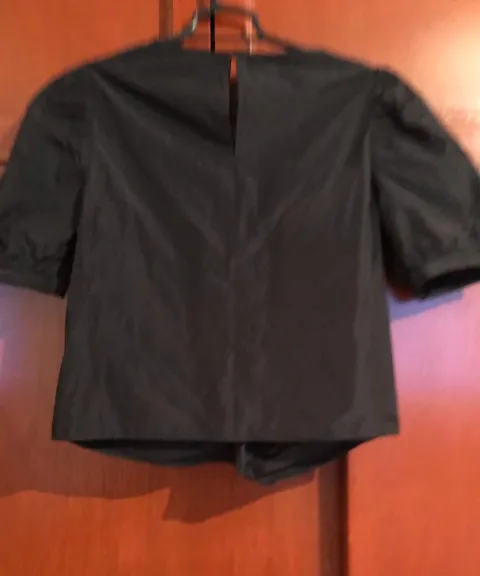 Blusa negra de tela tipo impermeable. Manga 3/4. Nunca se usó