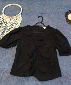 Blusa negra H&M. Blusa negra de tela tipo impermeable. Manga 3/4. Nunca se usó