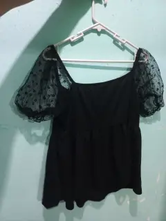 Blusa negra , mangas tela que se transparenta, ni una puesta
