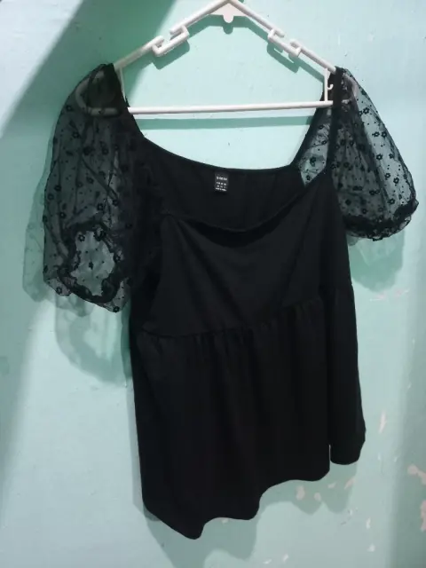 Blusa negra M shein. Blusa negra , mangas tela que se transparenta, ni una puesta