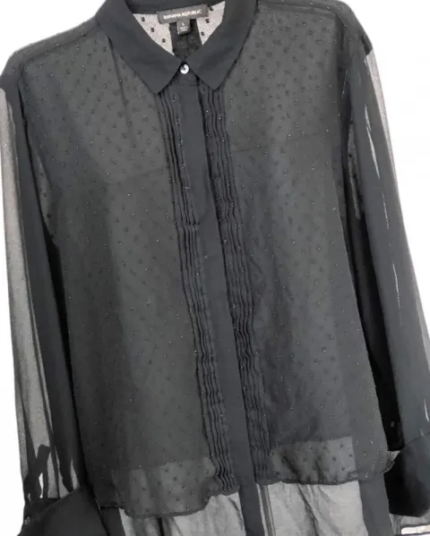 Blusa negra transparente Banana Republic en capas con mangas flor y bolitas bordadas talla L.