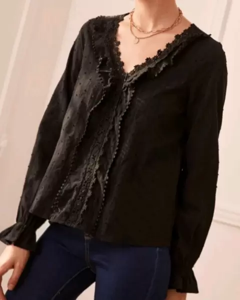 Blusa color negro con detalles en encaje muy fresca, talla M es amplia, cualquier duda favor de mandarme mensaje.