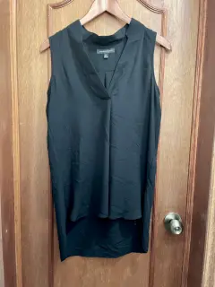 Blusa básica vaporosa, negra, semitransparente, sin manga, marca Banana Republic. Fresca, estilo casual formal, perfecta para verano. La parte posterior es más larga que la frontal. Es XS pero es amplia, puede ser S. Doy regalito con el envío. 😉