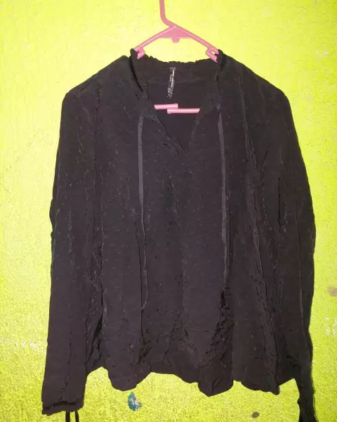 Blusa con detalles de terciopelo en cuello y mangas, excelente estadoTalla S, da a un 36b de busto