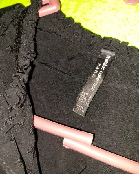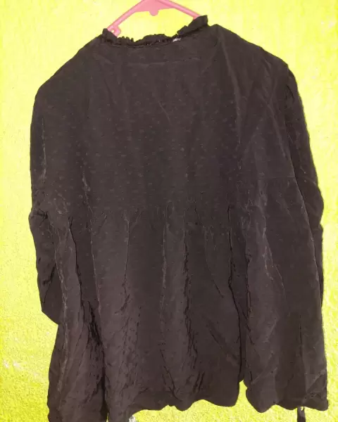 BLUSA NEGRA ZARA. Blusa con detalles de terciopelo en cuello y mangas, excelente estadoTalla S, da a un 36b de busto