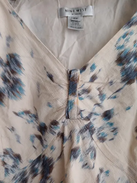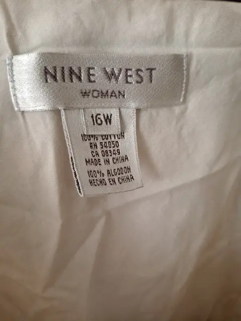 Blusa Nine West. Blusa para dama 100% algodón, manga corta. Medidas: hombro: 61 cm; busto: 49 cm; largo: 67 cm. Talla que marca la blusa es 16 W