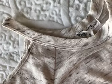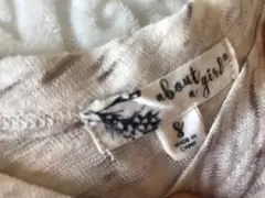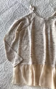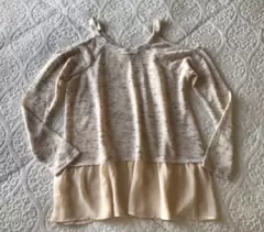 Hermosa blusa manga larga con hombros descubiertos, simula blusa abajo, en color beige con detalles cafés, la tela es fresca, viene a talla 7 tal vez a una talla 9 checando el tamaño de los brazos