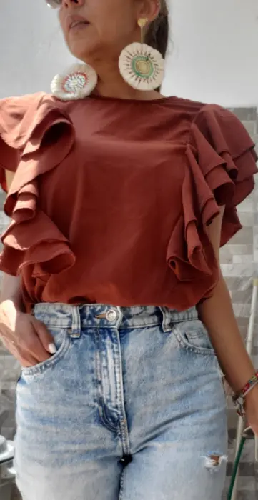 Blusa casual, manga corta con olanes.tipo matioosa Tela suave y delicada