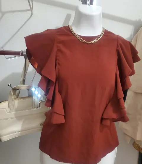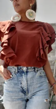 Blusa olanes zara marron. Blusa casual, manga corta con olanes.tipo matioosa Tela suave y delicada