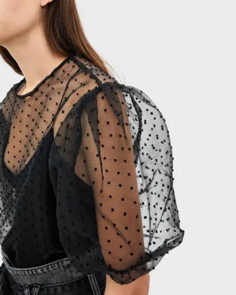 Blusa de organza transparente con lindos detalles bordados en toda la tela marca Bershka, solo incluye la blusa transparente.