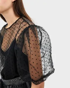 Blusa organza bodkami. Blusa de organza transparente con lindos detalles bordados en toda la tela marca Bershka, solo incluye la blusa transparente.