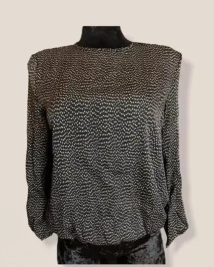 Esta Blusita está padrísima, creo que no habría mejor descripción, es negra con óvalos en blanco y amarillo 🤗