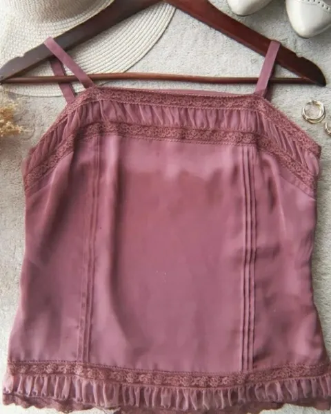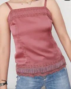 Preciosa blusa de satín, color rosa palo, detalles de encaje, talla extra chica a chica, en perfecto estado