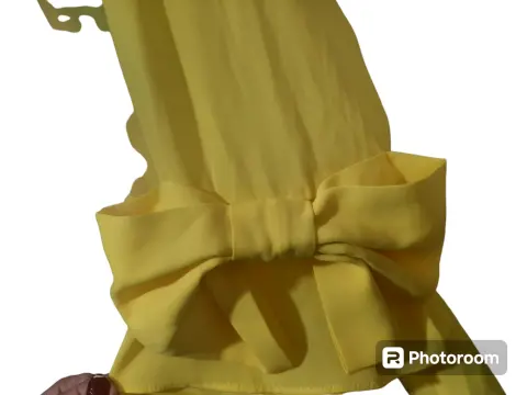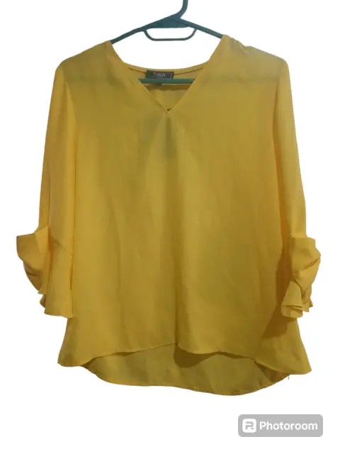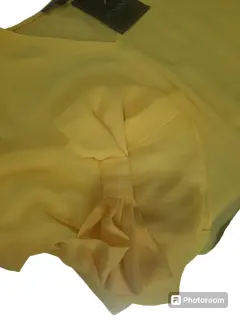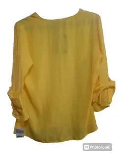 Blusa para Dama color amarilla, manga 3/4 con detalle de moño, talla 6, nueva, marca Ivonne linea petite