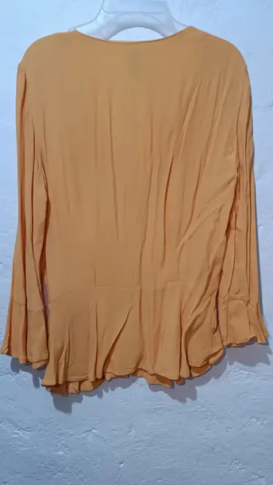 Blusa peplum, escote en V. Blusa amarilla con escote en V, botones delanteros, la manga es mía en la zona de la muñeca , solo se usó una.vez
