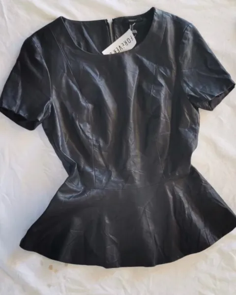 Blusa peplum vinipiel FOREVER21. Hermosa blusa vinipiel negra, es nueva con etiqueta