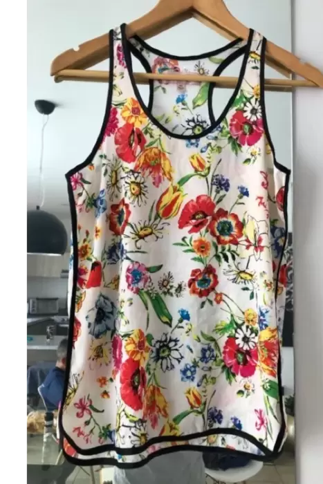 Linda blusa de tirantes con flores , tiene en los lados línea negra y luce genial . 65 largo 41 pecho