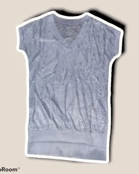 Blusa plata transparente. Queda muy linda con un top o bra Es larga para usar com leggins o jeansTela strechPuede quedar a talla Ch y MSe ven muy linda puestaMedidas 56 cm espalda alta Cintura 86cmLargo 76 cmTiene dos lijeros detalles, como ragado que no se notan, se ven en fotos 5 y 6