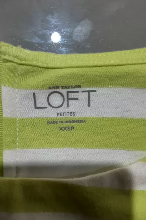 Blusa playera. Blusa/ camisa playeraTalla xxsp 15"ancho 23 " largoMarca LoftRayado Verde y BlancoCon cierre posterior