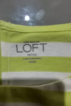 Blusa/ camisa playeraTalla xxsp 15"ancho 23 " largoMarca LoftRayado Verde y BlancoCon cierre posterior