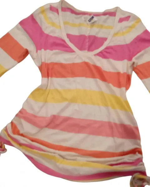 Blusa plegable Old Navy. Blusa transformable, rayada. Tiene tiras ajustables a los lados para hacerla corta y plisada Manga tres cuartos. La tela es muy suave, de algodón. Y los colores son más apastelados y bonitos. Viene amplia queda a chica y mediana.