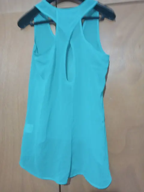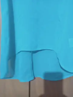 Blusa primaveral turquesa. Blusa primaveral color turquesa de poliéster, cuello redondo, escote cruzado en la espalda, bolsita enfrente, asimétrica