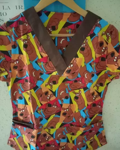 Blusa quirúrgica. Blusa quirúrgica de algodón con estampados originales en cuello V en parte trasera tiene cintas ajustables by tiene enfrente doble bolsa en parte inferior