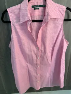 Bonita blusa RALPH LAUREN L se usó una sola vez x mi pechonalidad no me queda 😬, sólo que de no usarse tiene una ligera mancha en el cuello como amarilla, casi no se ve.50 cms de axila a axila65 cms de largo36 de hombro a hombro