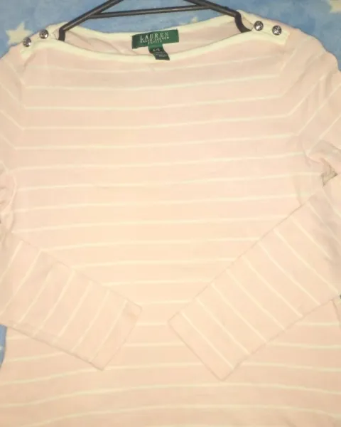 Bonita blusa ralph lauren talla s, de uso pero en excelente estado solo con un pequeño detalle que no arruina la estetica y su uso (se muestra en la ultima foto)