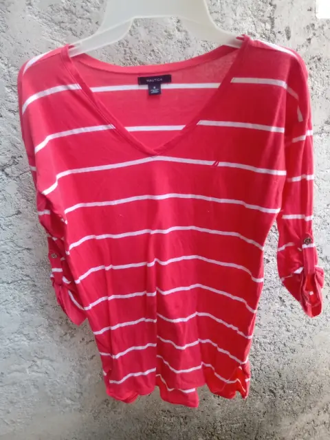 Blusa rayada color rosa con líneas blancas de muy buena calidad