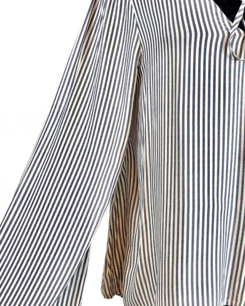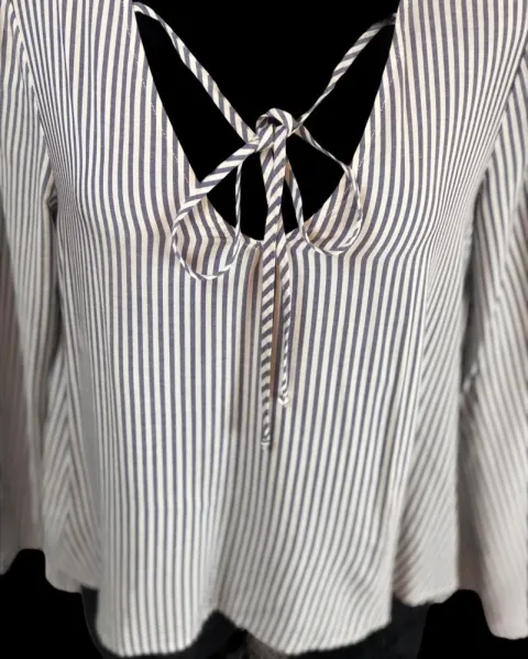 Blusa Mossimo rayas azules con listón en la parte de enfrente que le da una linda vista, mangas olgadas, super elegante y combina perfecto con unos jeans blancos.