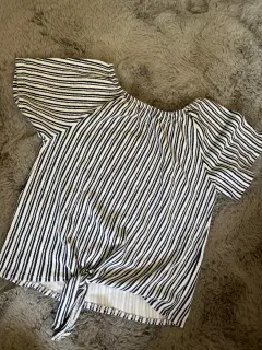 Blusa rayada niña 11-12 - kids. Blusa a rayas azul y blanco, cinta para amarrar en la cintura, cuello con resorte