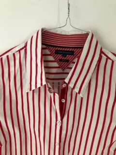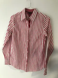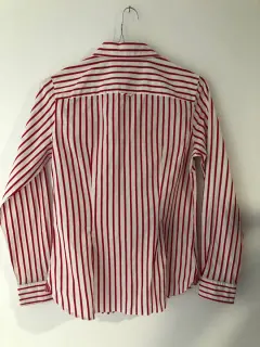 Blusa de rayas blanco con rojo, manga larga de tela fresca. En excelente estado