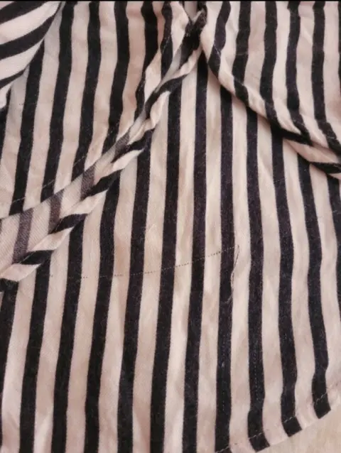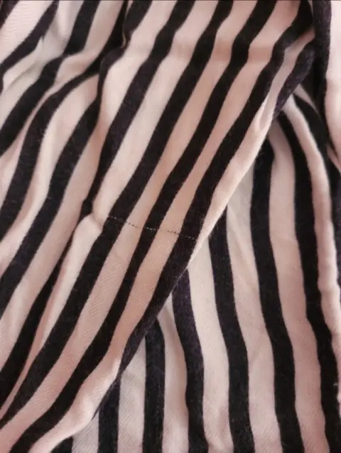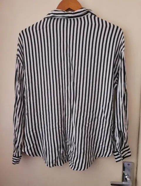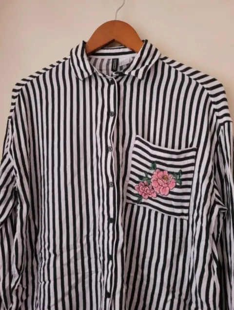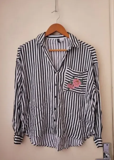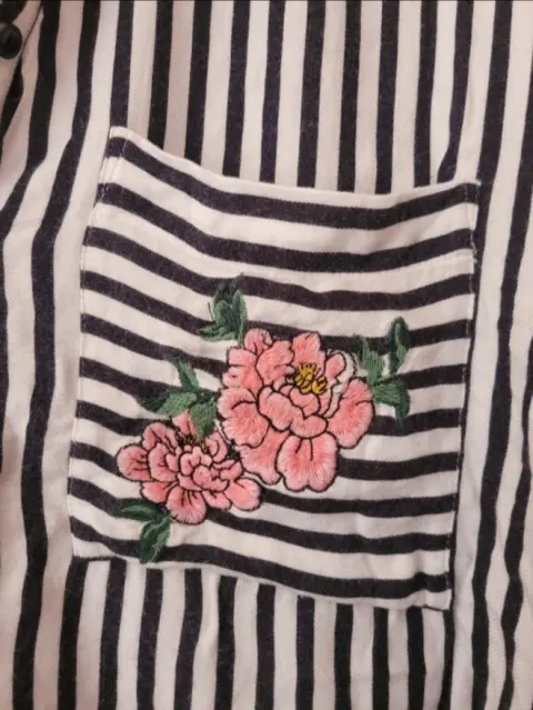 Blusa rayas c/flores. Blusa manga larga, tela delgada, detalle flores bordadas talla M/L, holgada tiene 3 detalles muestra imagen no afecta uso no es muy visible.