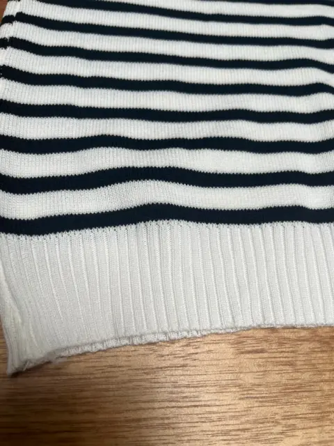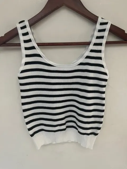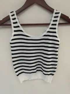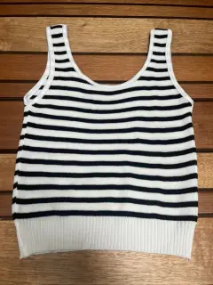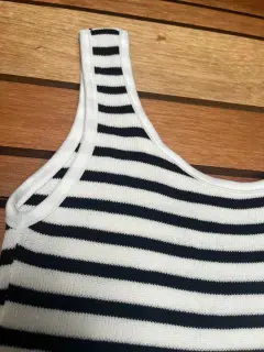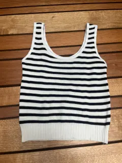 Blusa de punto, rayada, sin mangas.Mide 32 axila a axila y 42 cm de largo.