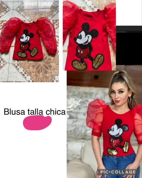 Blusa color roja mangas corte princesa, con etiqueta, talla chica pero también le hace a una mediana no tan llenita. Esta muy bonita anexo el modelo de cómo se ve puesta.