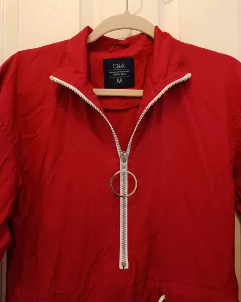 Blusa Roja. Blusa tipo camisa, cuello en V con sierre metálico y elástico en la cintura ajustable, manga larga.En muy buen estado, se usó 1 o 2 veces.